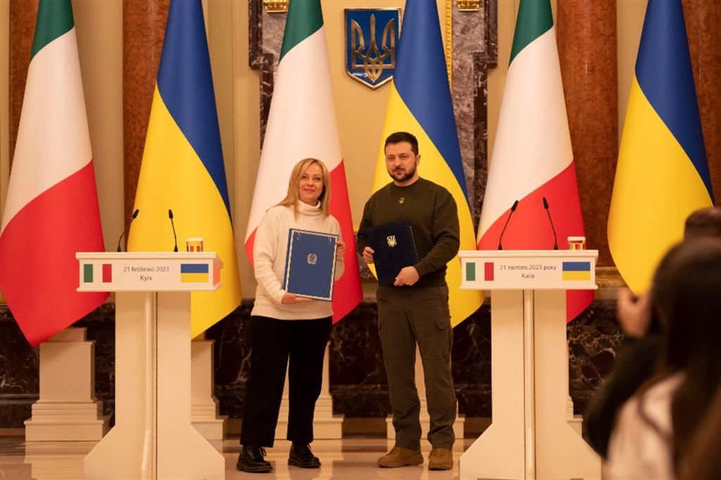 Quasi 365 giorni dopo è anche il giorno di Giorgia Meloni a Kiev. Ci arriva nervosa, ma esce dalla capitale ucraina con un endorsement da parte del presidente Volodymyr Zelensky.