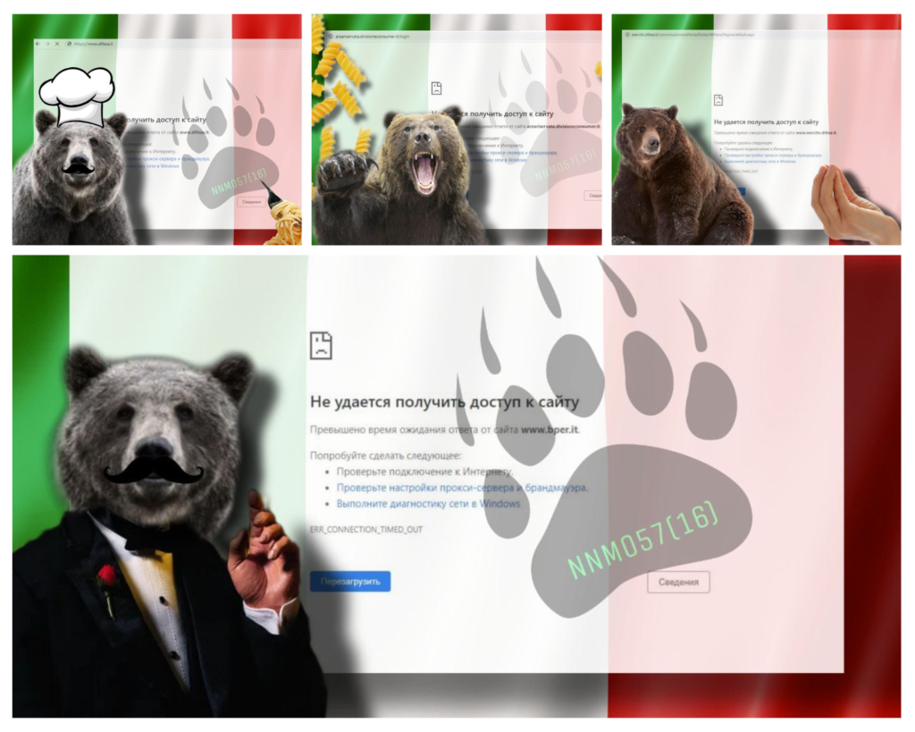 A parte un pittoresco orso con baffi e cappello da cuoco (di nuovo, i pregiudizi sono difficili da scalfire), ci sono riferimenti al sesto pacchetto di aiuti militari e alla conferenza a Kiev della premier Meloni. Segue una decina di post, che va in una sola direzione: magnificare l’operato del gruppo hacker e sottolineare i risultati dell’attacco.